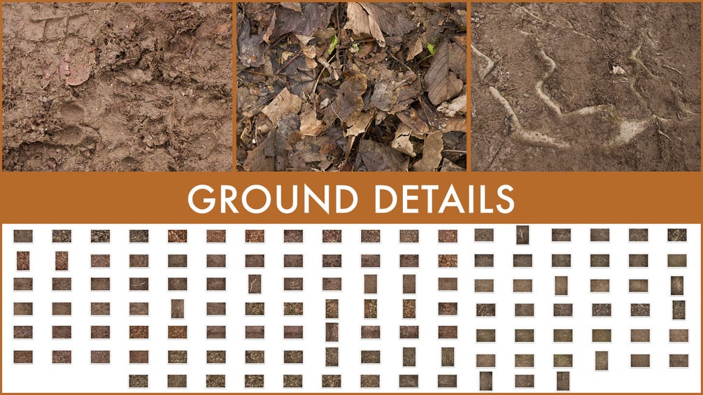 - Ground details (foot prints in mud, fallen leaves)
